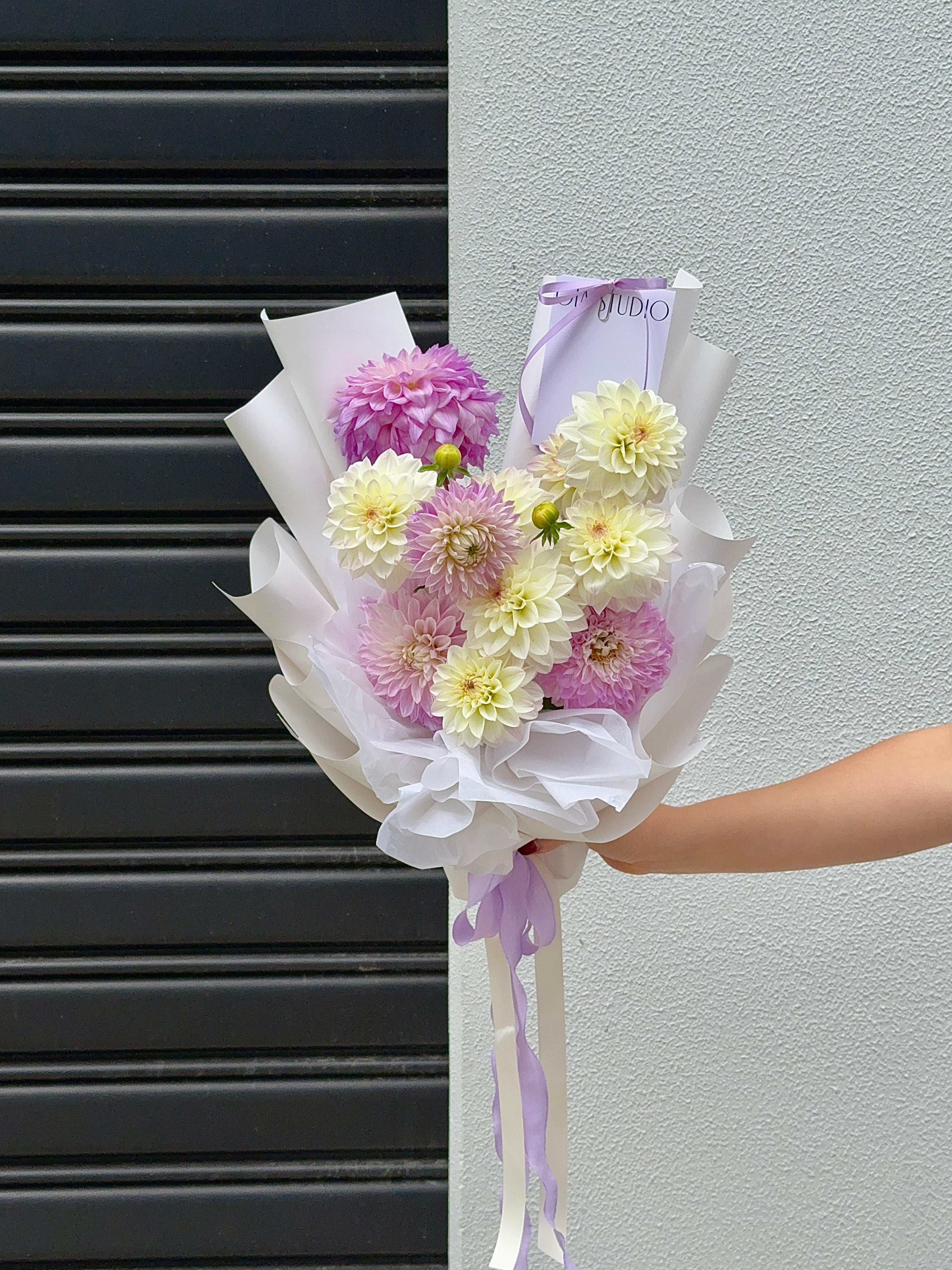 As dahlias are a seasonal favourite, each bouquet will vary slightly in colour and shape — and that’s all part of the charm.