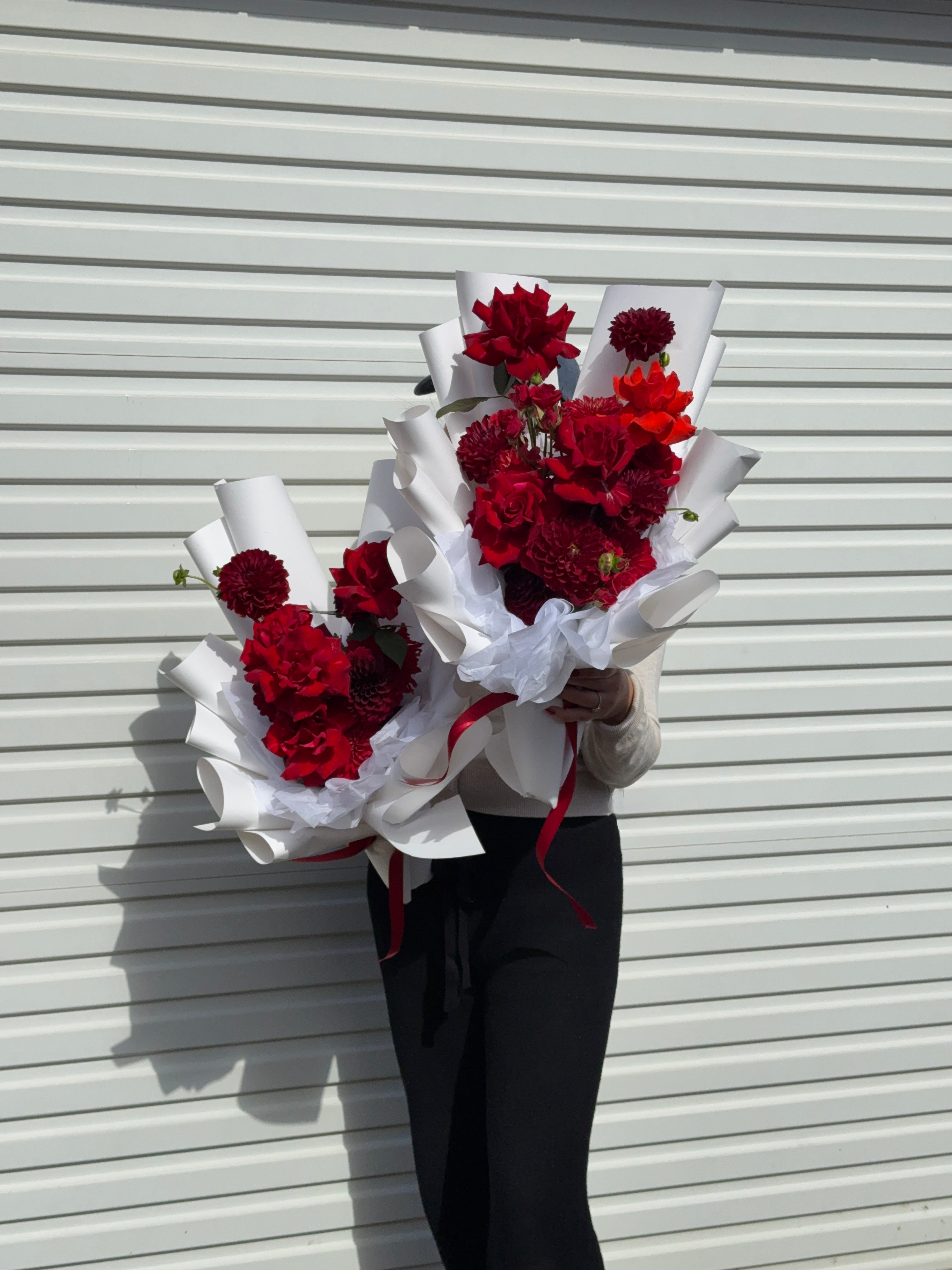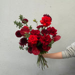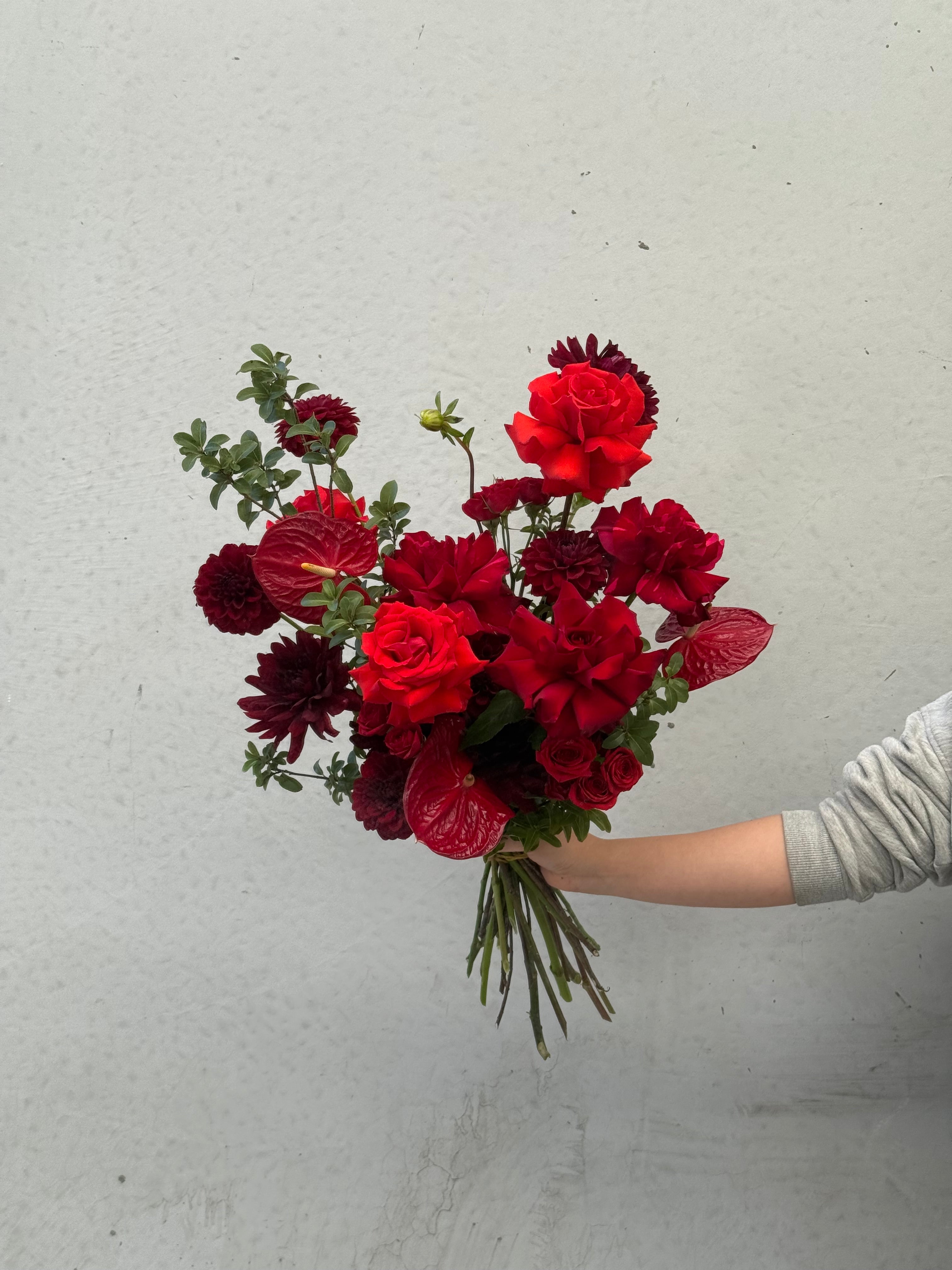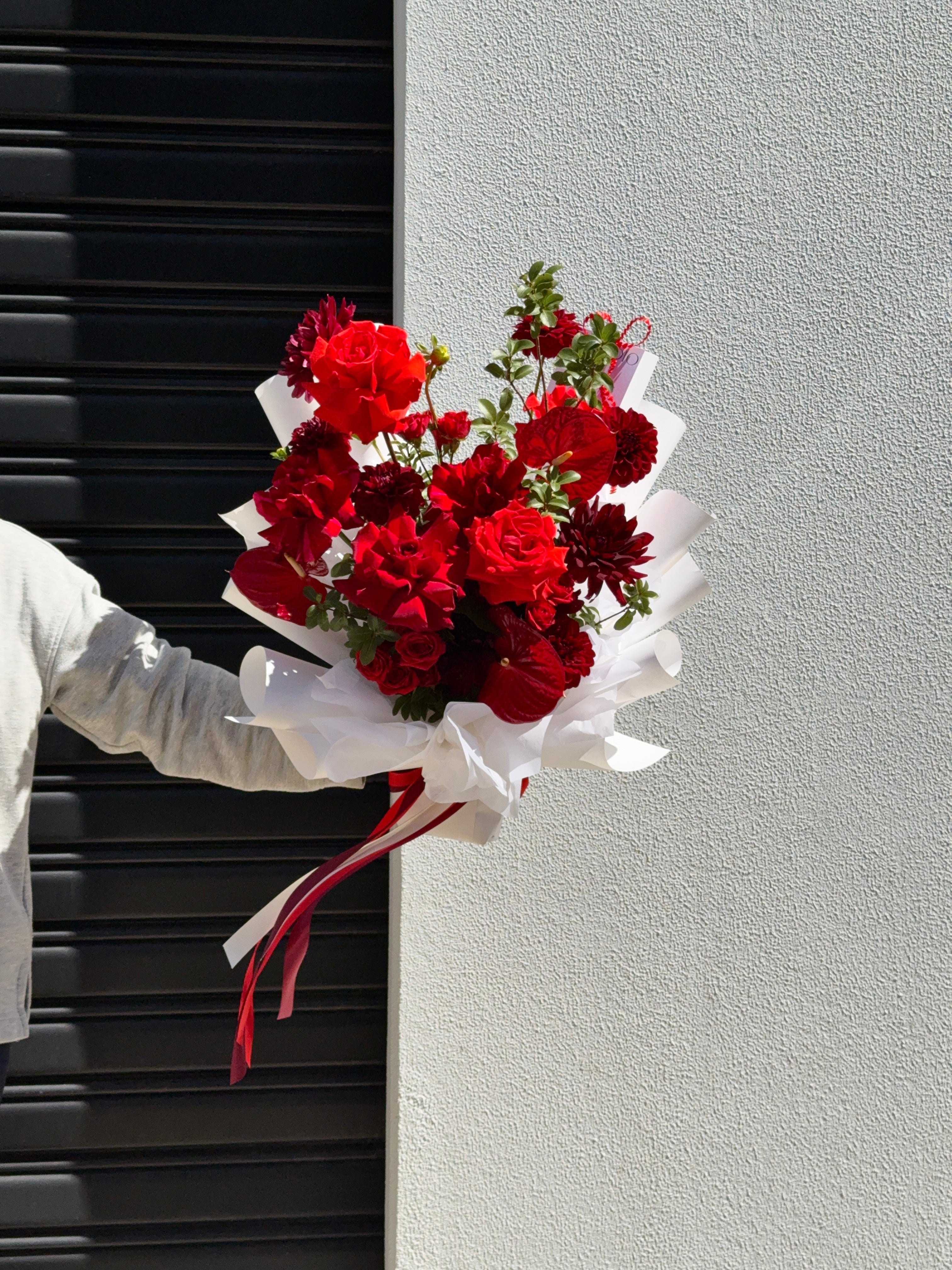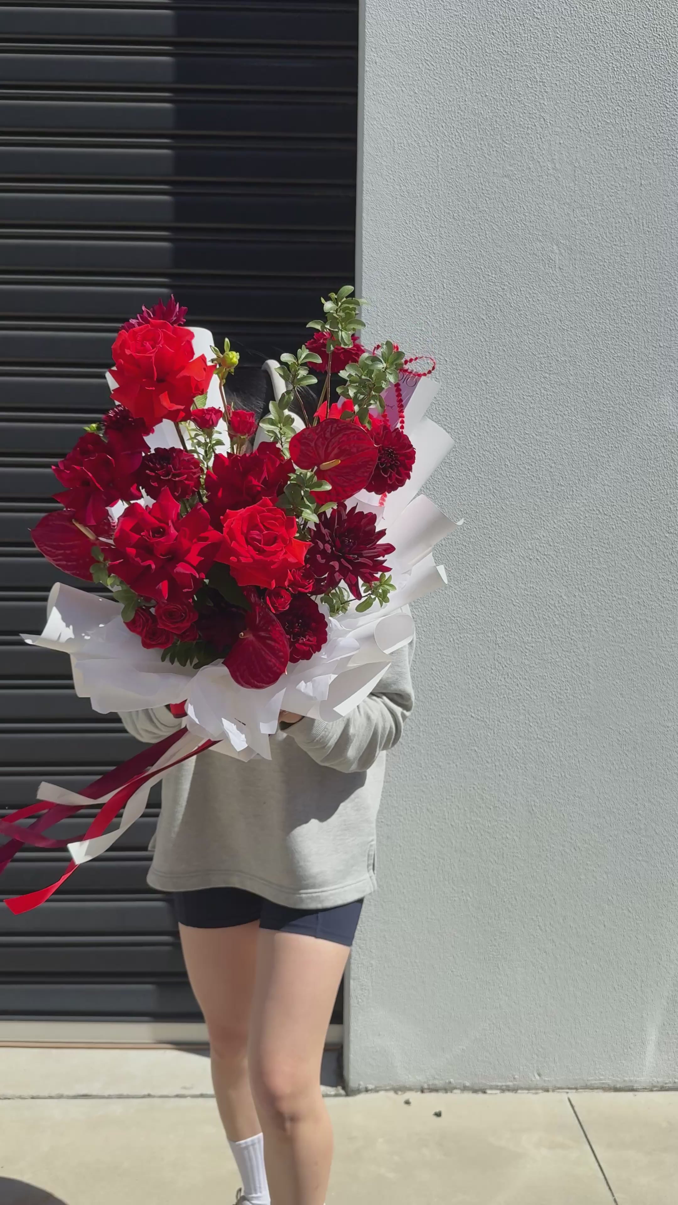 Turn up the romance with our Love Bomb Bouquet, overflowing with premium reflexed roses in cherry, red, burgundy, and seasonal blooms. Perfect as a romantic gift, it’s designed to surprise, impress, and celebrate love in bold, unforgettable style. Every bloom is hand-selected to ensure a luxurious, indulgent bouquet that leaves a lasting impression.