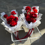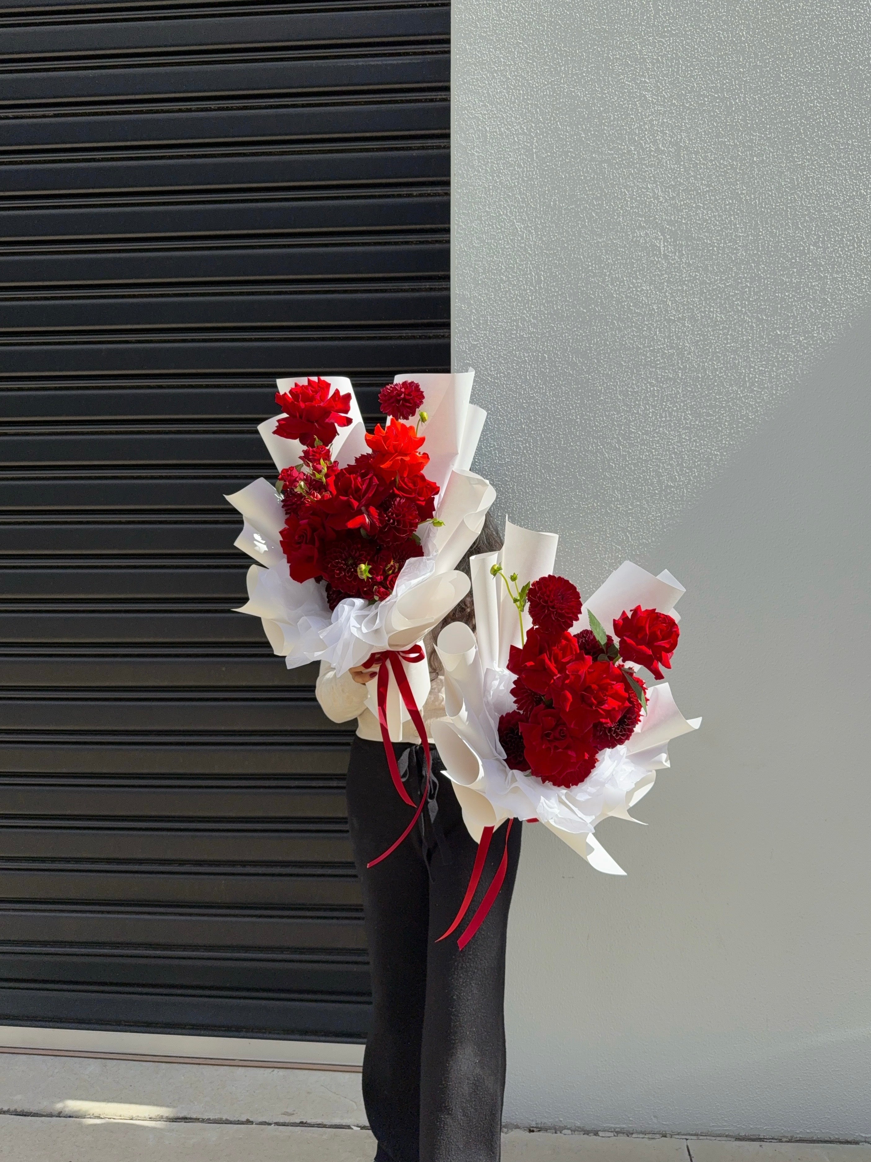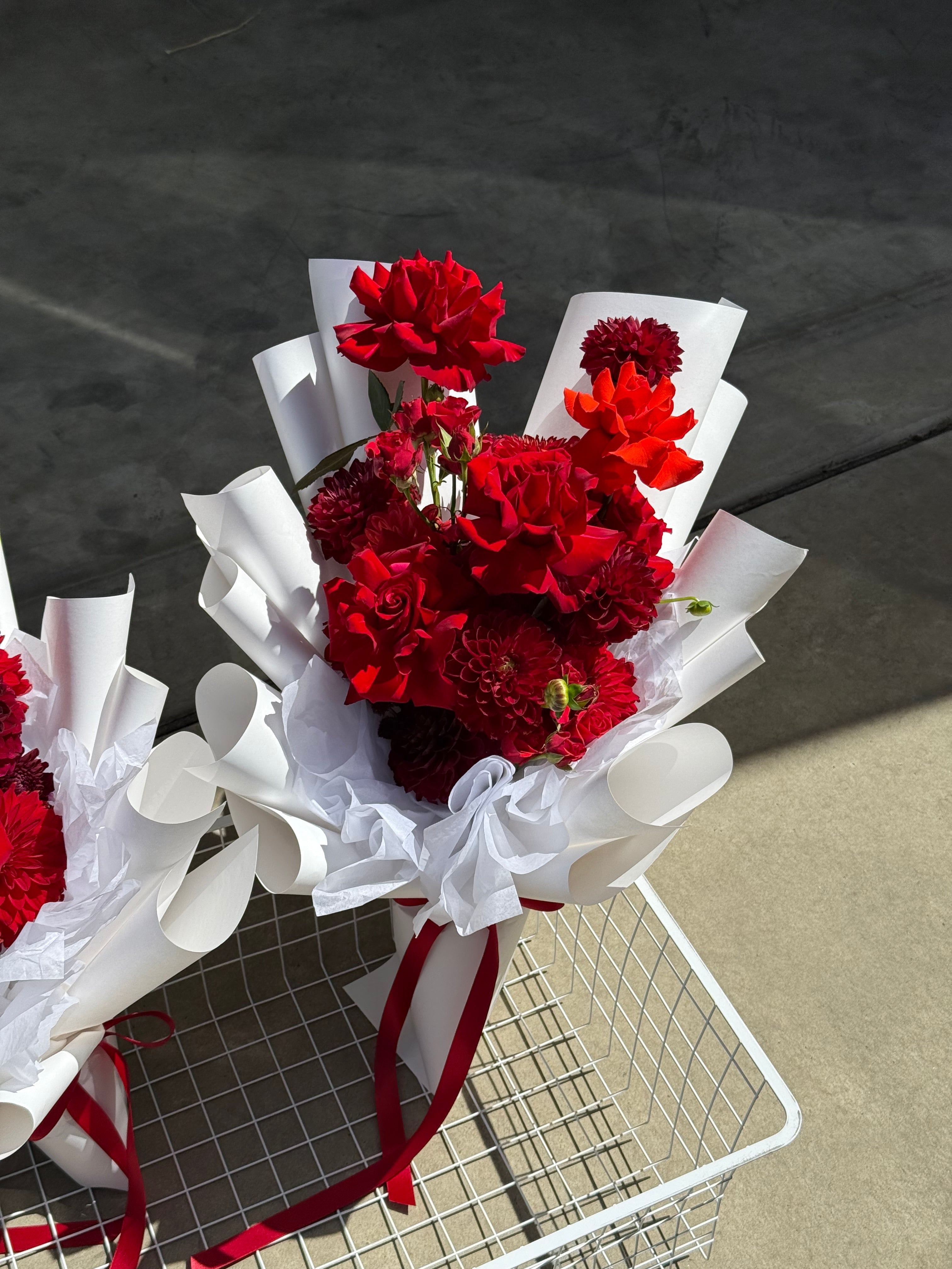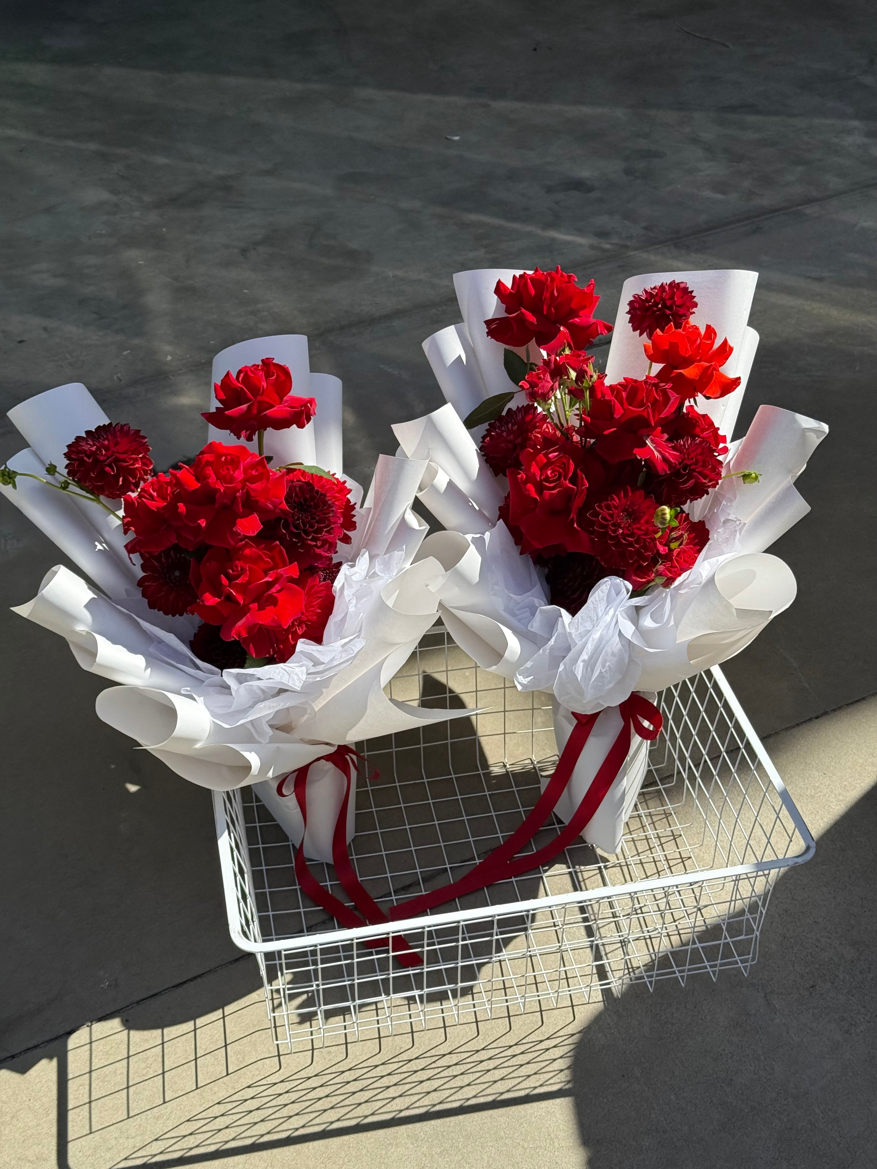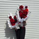 Turn up the romance with our Love Bomb Bouquet, overflowing with premium reflexed roses in cherry, red, burgundy, and seasonal blooms. Perfect as a romantic gift, it’s designed to surprise, impress, and celebrate love in bold, unforgettable style. Every bloom is hand-selected to ensure a luxurious, indulgent bouquet that leaves a lasting impression.